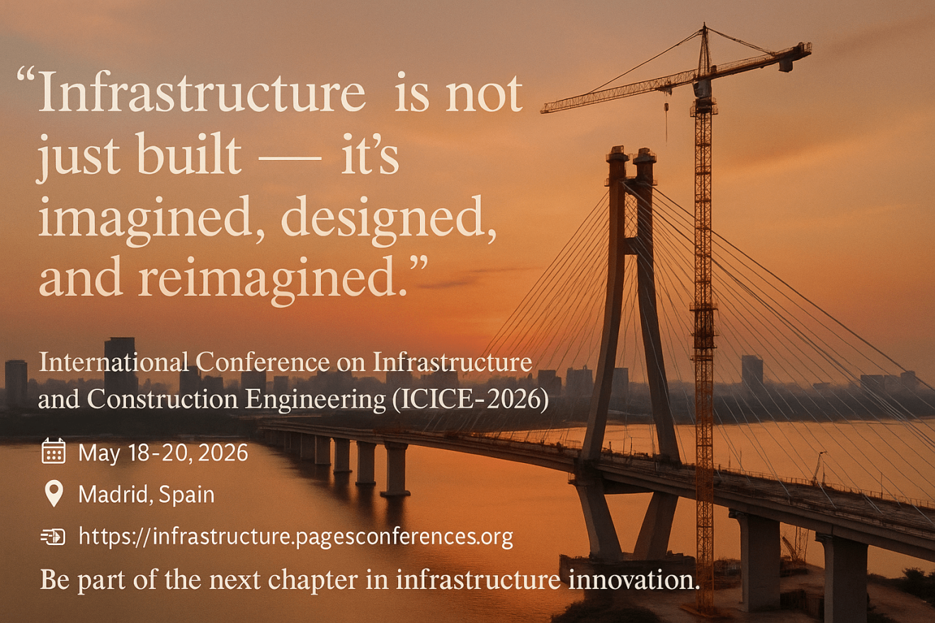 We cordially invites you to the International Conference on Infrastructure and Construction Engineering from May 18-20, 2026, in Madrid, Spain and we look forward to welcoming you to Madrid for this impactful and inspiring event!